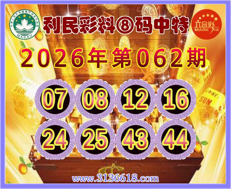 062期:〖利民彩料〗 🎯⑧码中特🎯开:24准上榜高手
