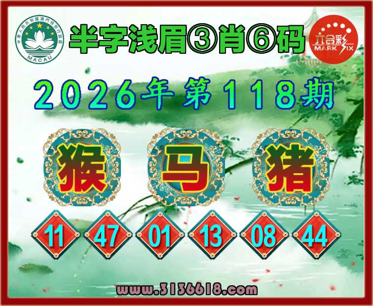 118期:【半字浅眉】 ♥️③肖⑥码♥️【猴马】开:猪08准上榜高手