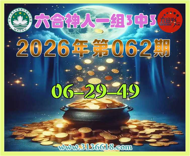 062期:〖六合神人〗 👛一组3中3👛【06-29-49