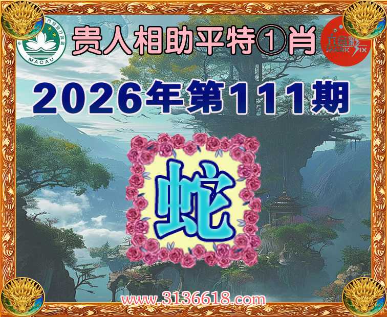 111期: 贵人相助 🐁平特①肖🐁【蛇】开:蛇38准上榜高手