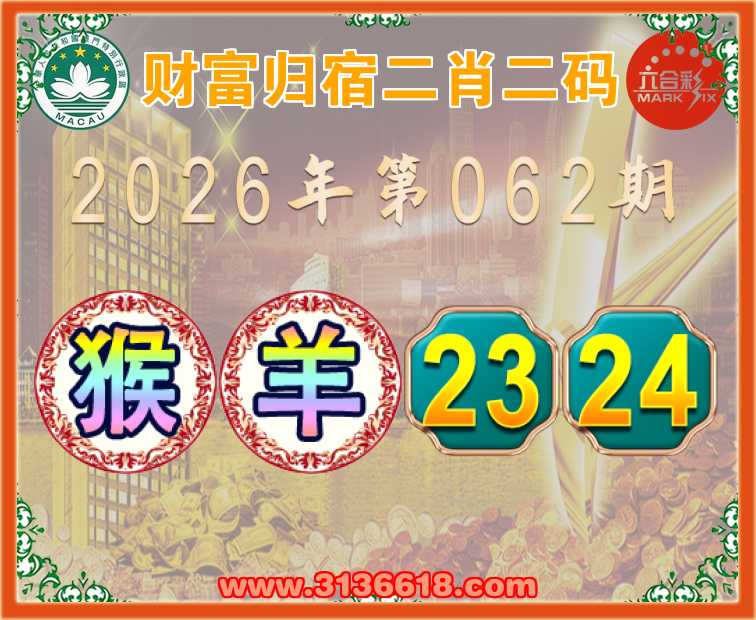 062期:《财富归宿》 🤘二肖二码🤘【猴】【23.24】开:羊24准上榜高手