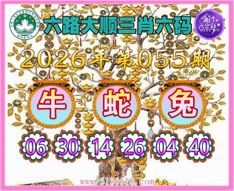 055期:『六路大顺』 😍三肖六码😍【牛兔】开:蛇14