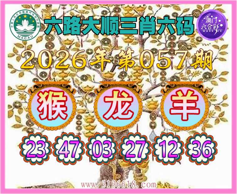 057期:『六路大顺』 😍三肖六码😍【龙羊】开:猴23