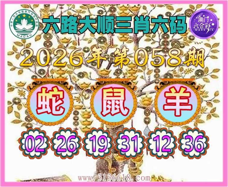 058期:『六路大顺』 😍三肖六码😍【蛇羊】开:鼠31