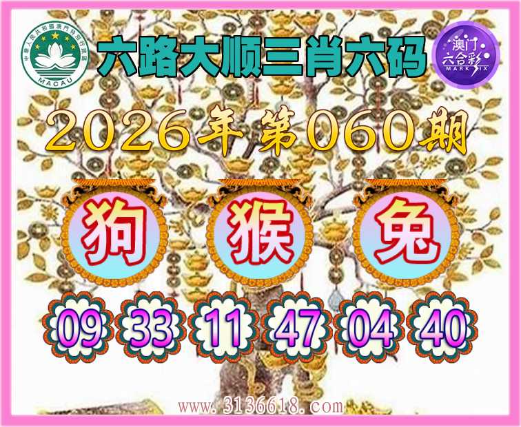 060期:『六路大顺』 😍三肖六码😍【猴兔】开:狗09