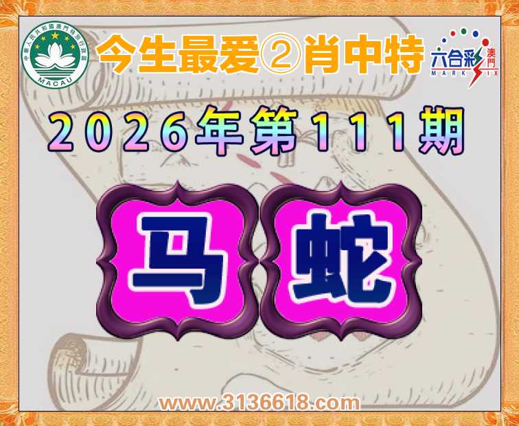 当前为 2026年六合彩生肖岁数,本  马 年 生肖排列顺序: 1-马,2-蛇,3-龙,4-兔,5-虎,6-牛,7-鼠,8-猪,9-狗,10-鸡,11-猴,12-羊
