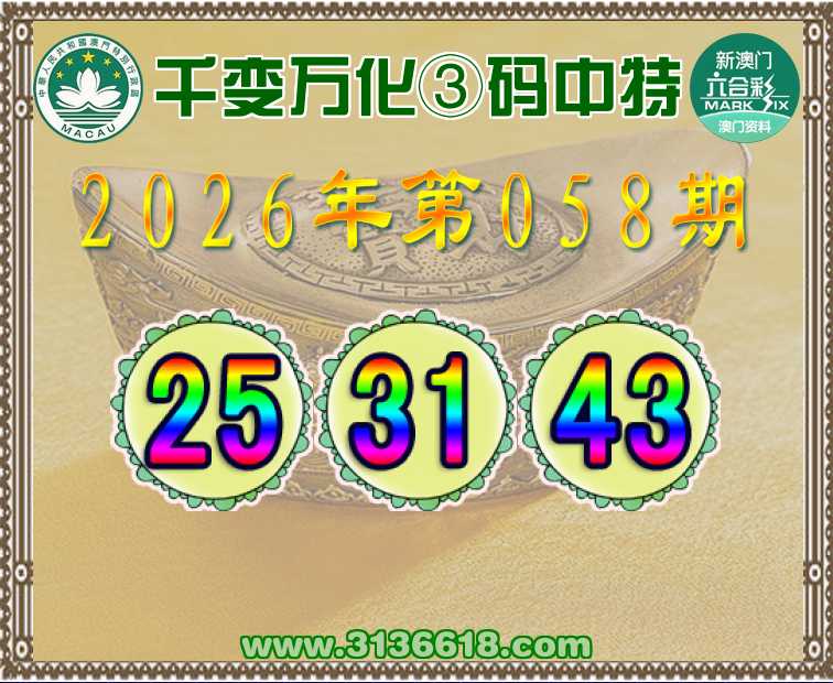 058期:〖千变万化〗 🌸③码中特🌸【25.31.43】开:31