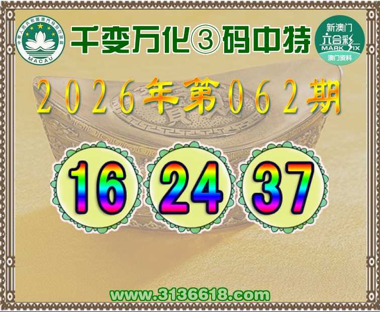 062期:〖千变万化〗 🌸③码中特🌸【16.24.37】开:24准上榜高手