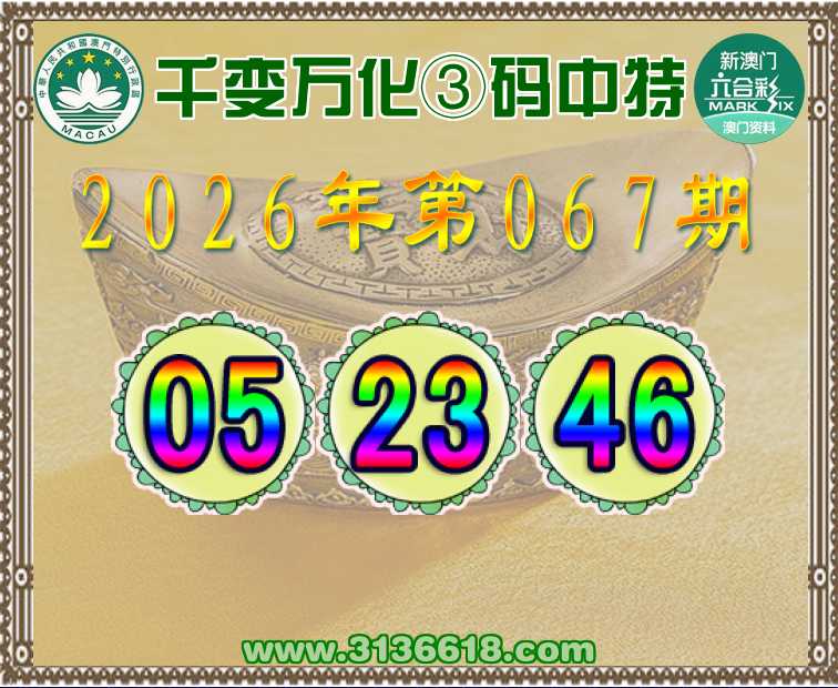 067期:〖千变万化〗 🌸③码中特🌸【05.23.46】开:05准上榜高手